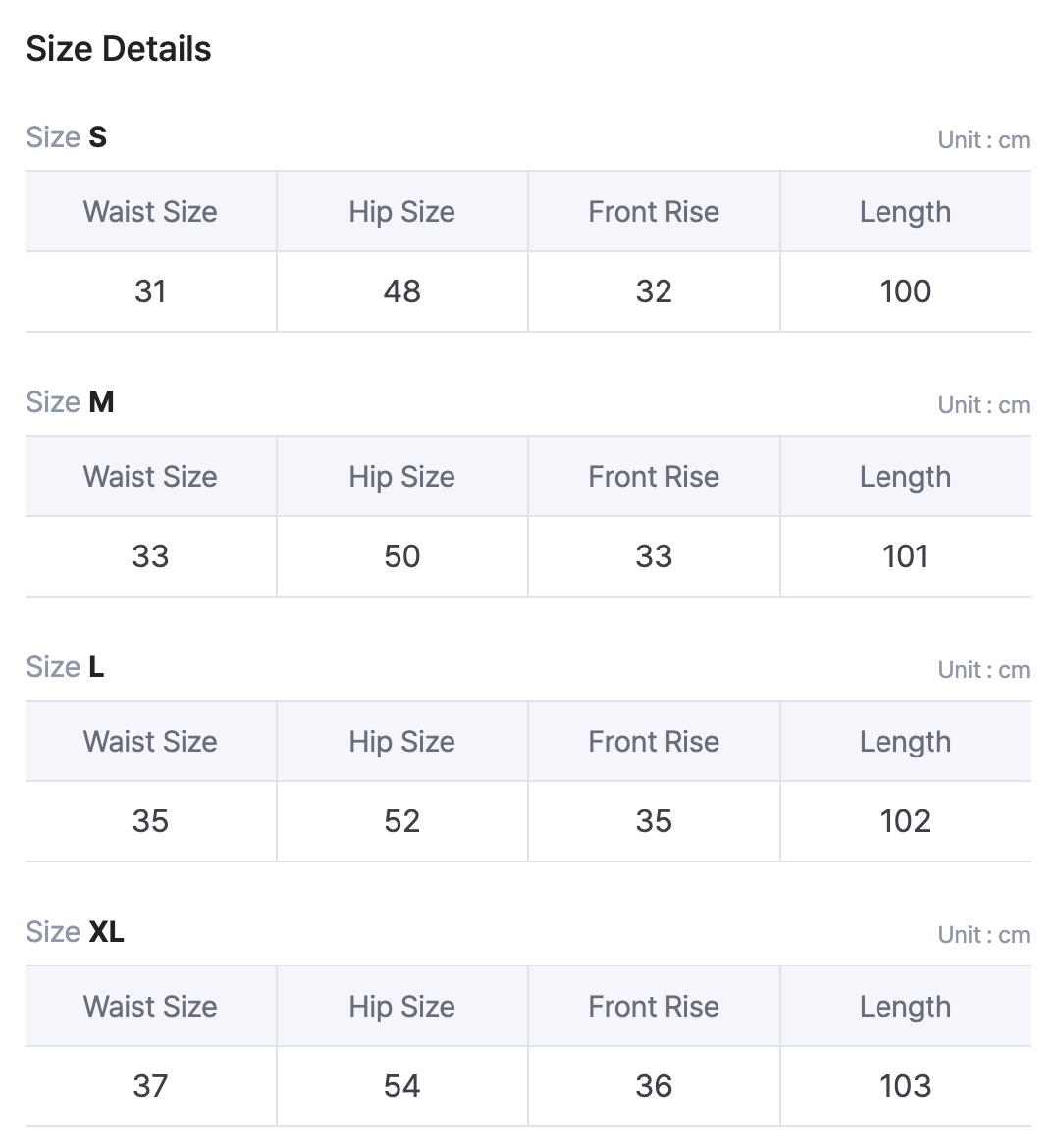S/M/L/XL size 都有橡筋腰 店主穿平時穿25-26腰s就可以了!
